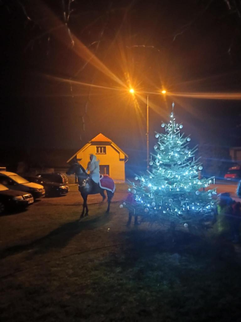 V naší obci jsme v sobotu také rozsvítil vánoční stromeček. Byla zima a proto byl pro všechny byl připravený svařák, vaječný likér a čaj. Příjemné vánoční melodie nám zahrál Honza Rydl. Po krátkém proslovu starostky si děti nahlas odpočítali rozsvícení stromku. Povedlo se!!